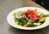 Romaine lettuce, tomato, onion, cucumber, roasted red peppers & black olives.