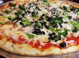 Green peppers, onions, mushrooms, broccoli, black olives and spinach.