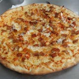 Topped with BBQ sauce, mozzarella, and chicken meat.