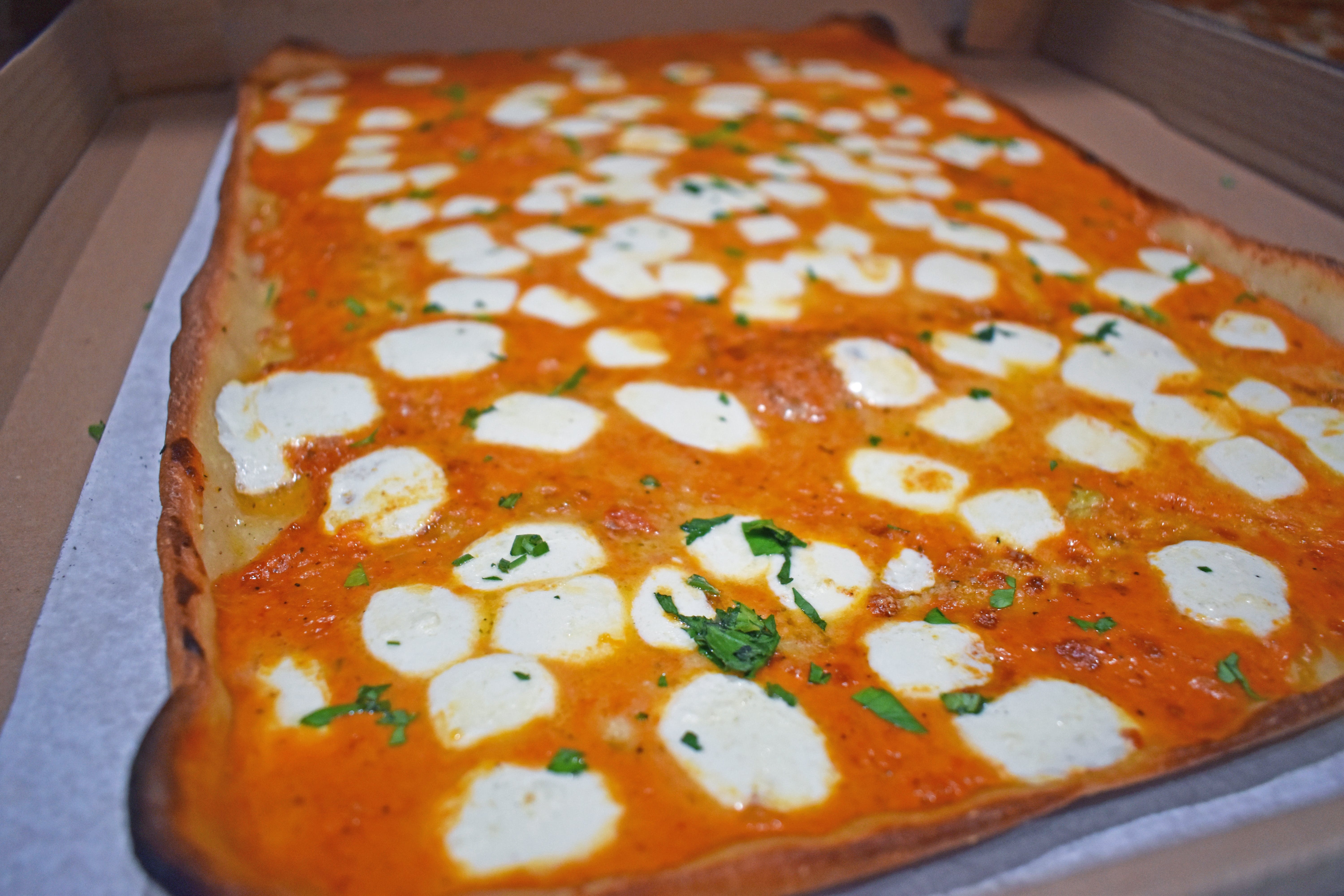 Plum tomato sauce, basil-infused EVOO, fresh burrata & arugula.