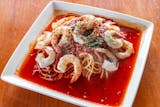 Shrimp and clams in a spicy marinara sauce over linguini.