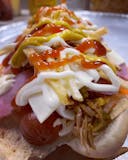 Grilled steak, grilled chicken, grilled chorizo, fresh avocado, hard-boiled egg, sauce, lettuce, tomato, onion, queso Blanco.