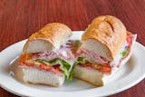 Mixed greens with tomatoes, cucumbers, olives, and creamy Italian dressing on the side. Topped with sliced ham, genoa, eggs, and provolone.