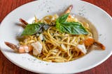 Fresh jumbo shrimp in a garlic, capers and white wine sauce. Served over linguini pasta.
