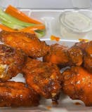 Traditionally fried chicken wings are tossed in your choice of hot sauce or BBQ sauce. Served with celery, carrot sticks, and blue cheese.
