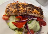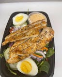 Mixed greens with grilled chicken, bacon, eggs, red onions, crumbled gorgonzola cheese, tomatoes and cucumbers. Served with a choice of dressing.