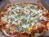 Sliced Italian sausage, chicken strips, fresh tomatoes, and red roasted peppers in a lightly cherry peppers sauteed with garlic & olive oil over penne pasta.
