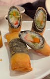 Fried sushi roll with crab meat, avacado, carrot and seasoned rice wrapped in seaweed and spring roll pastry. served With cucumber wasabi sauce as a side