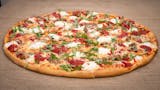 Onion, peppers, mushrooms, sausage, meatballs, pepperoni, bacon & garlic.