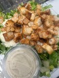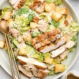 Grilled chicken, romaine lettuce, Parmesan cheese, and Caesar dressing.