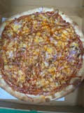 Shaved Parmigiana, mozzarella cheese, hot sausage, beef pepperoni, Italian hot peppers, and scallions.
