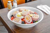 Turkey, ham, American cheese, salami, Provolone and hard-boiled egg.