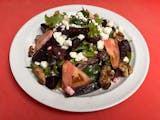 Shaved ribeye steak with sauteed onions and crumbled blue cheese topped with fresh baby spinach and a balsamic glaze served in your choice of wrap.