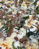 White Pizza Pie with spinach, ricotta, bacon, and garlic