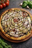 Pesto grilled chicken, fresh tomatoes, garlic fresh mozzarella.topped with balsamic reduction