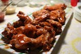 Chunk of crispy chicken breast smothered in Texas Pete's famous mild wing sauce.