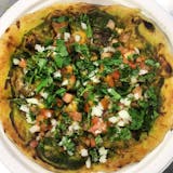 Choose between chicken, lamb or vegetable atop of our own. Cilantro sauce with cheese of your choice & finished with fresh diced tomatoes & onions fresh & spicy.