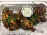 Delicious fire roasted chicken wings with your choice of sauce/dressing.