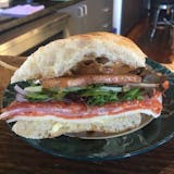 Pepperoni, salami, chorizo, ham, provolone cheese, lettuce & tomatoes, balsamic dressing & mayo on ciabatta bread.
