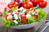 Fresh romaine, red onion, cucumber, Kalamata olives, tomatoes, green peppers, and pepperoncini.