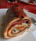 Organic dough filled with mozzarella cheese and sauce inside. Rolled and cooked until golden brown.