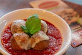 Meatballs in marinara, topped with mozzarella and parmesan cheese.