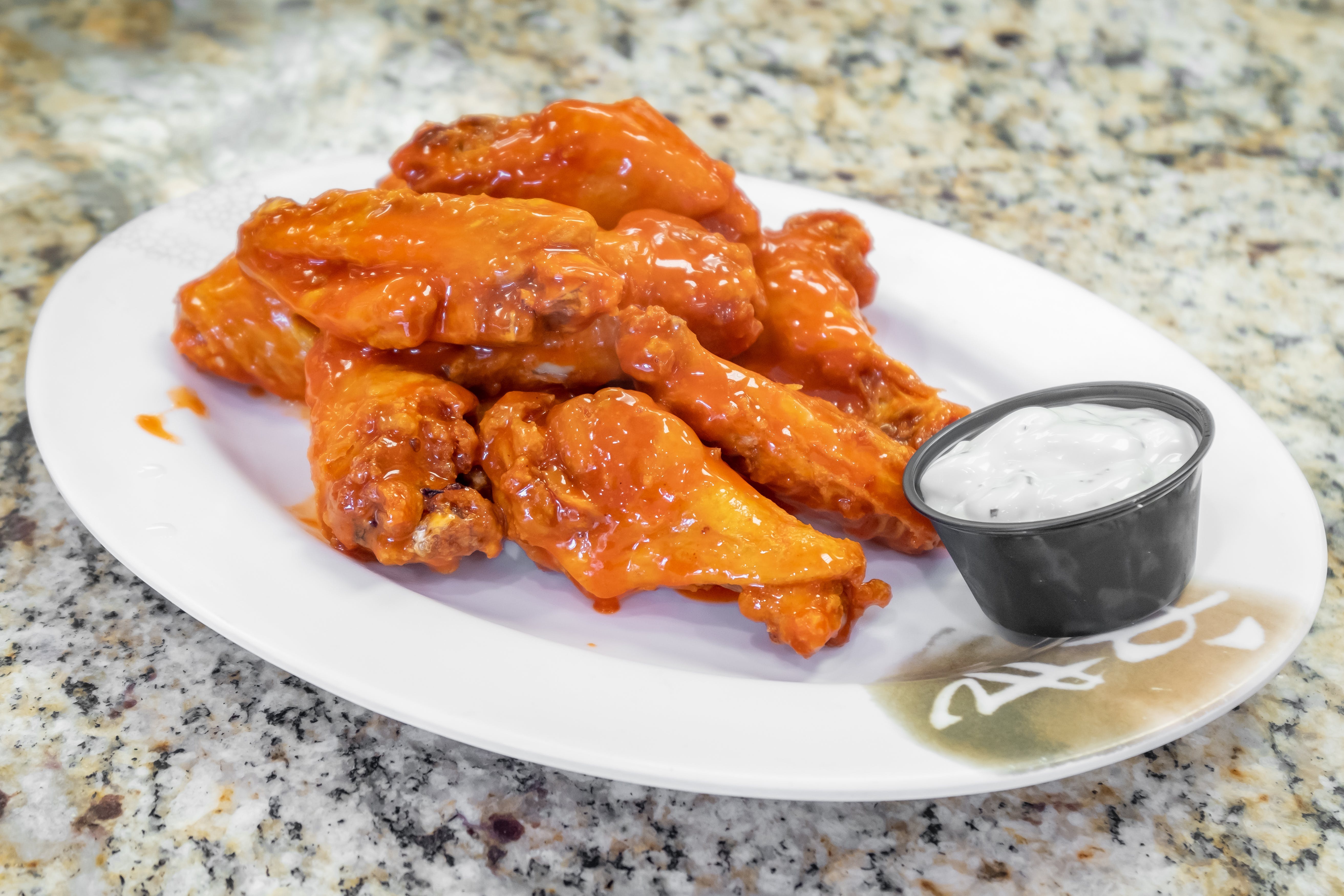 Our specialty, fresh, authentic buffalo wings, served with chunky blue cheese or ranch dressing.
