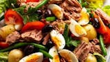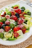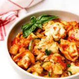 Mozzarella with a medley of fresh garden veggies, garlic & oil.