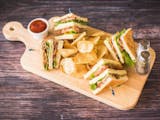 3 mini burgers with sliced yellow cheddar cheese and ketchup, mustard on the bun. Served with house-made parmesan potato chips.