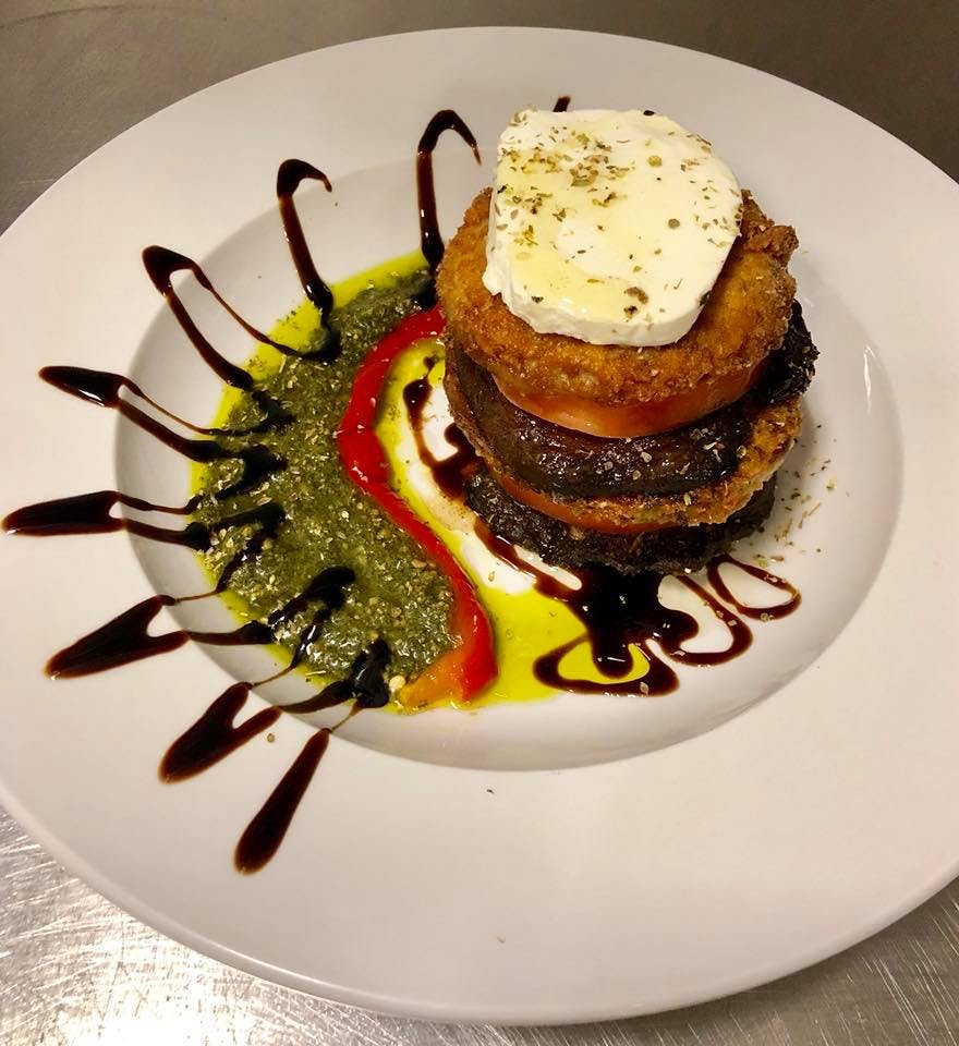 Fresh tomato, buffalo mozzarella, roasted red peppers, fresh basil, olive oil, balsamic reduction.