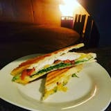 A classic white pizza smothered with fresh mozzarella, garlic, and extra virgin olive oil, goat cheese, fresh figs, caramelized onion, spinach, artichoke, grape tomato, prosciutto di parma topped with a honey reduction.