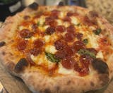 Artisan pepperoni, Nduja sausage, fresh basil, marinara, fresh mozzarella, Calabrian chili honey.
