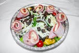 Romaine lettuce, tomatoes, onions, cucumbers, pepperoncini, olives, shredded mozzarella, ham, salami, capicola, provolone cheese.