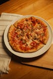 Pepperoni, sausage, meatball, bacon, ham, onions, mushrooms, green peppers, black olives and fresh tomatoes.