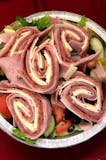 Mixed greens, ham, turkey, provolone, onions, tomatoes, olives, pepperoncini & cucumbers. Supersized for your party.