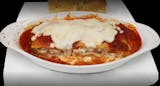 Jumbo ravioli stuffed with ricotta, topped with marinara sauce and mozzarella cheese.