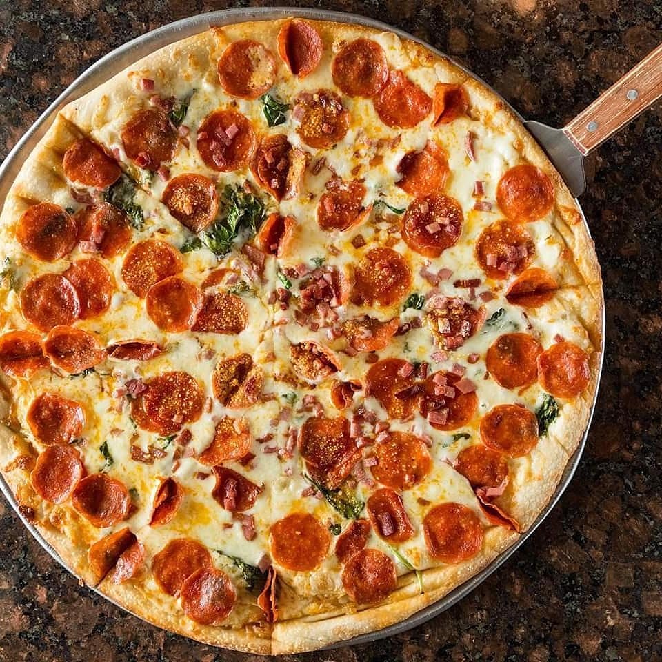 Pepperoni, sausage, mushroom, onion, green peppers, and mozzarella.