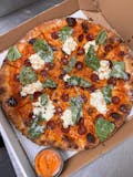 Vodka sauce, Mozzarella, Ezzo Pepperoni, Stracciatella, Mike's hot honey, Fresh Basil and Shaved Parmesan