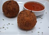 Rice balls stuffed with ground beef, peas, and mozzarella cheese. Served with tomato sauce