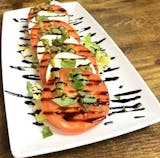 Fresh tomatoes, mozzarella, pesto sauce, and fresh basil. Served with a drizzle of extra virgin olive oil and balsamic glaze