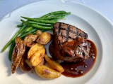 sliced, with mushroom Demi & mashed potatoes