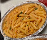 Cavatappi pasta with cheddar and melted mozzarella in cream sauce. Served with garlic rolls