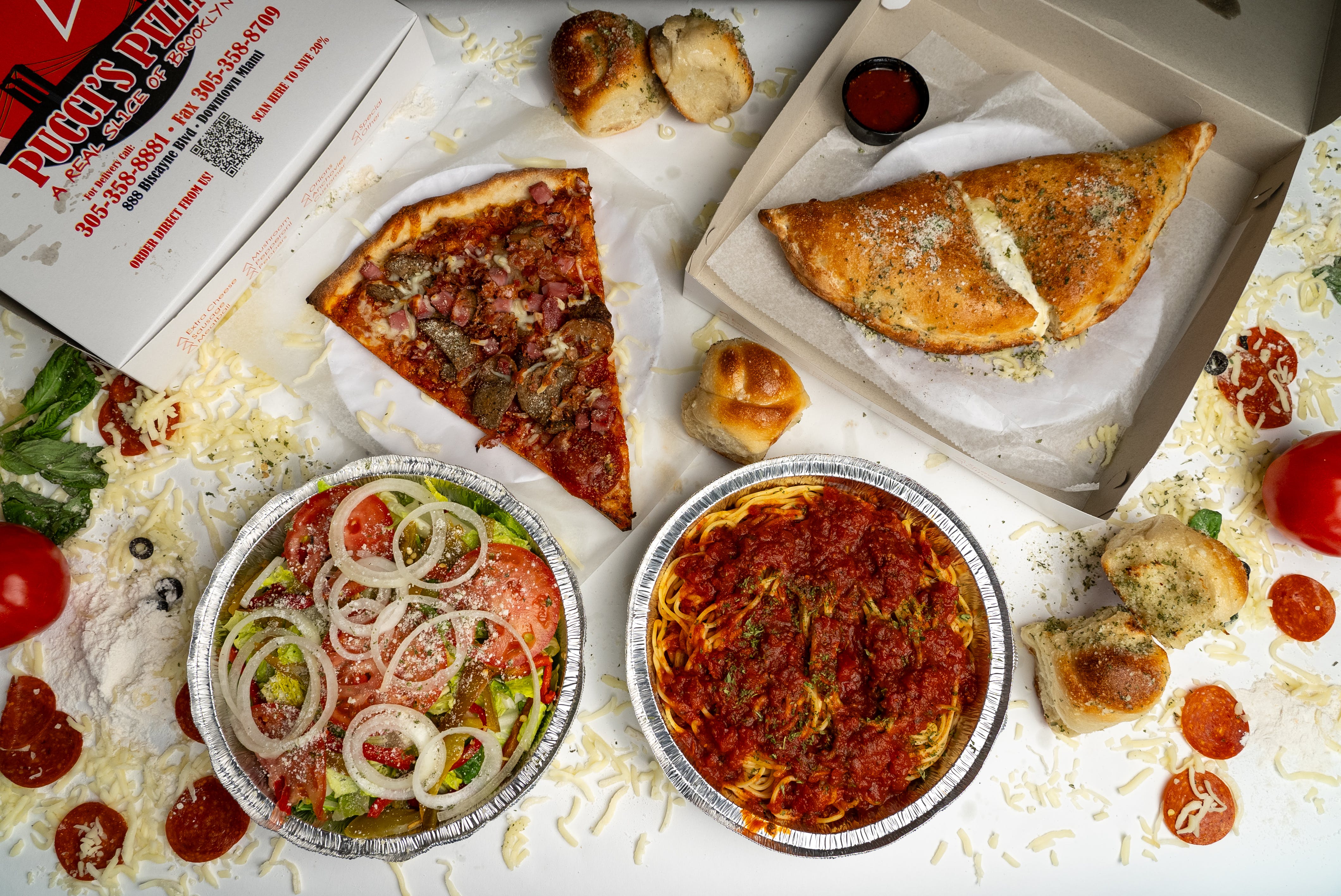 Our signature Brooklyn-style spread that satisfies all appetites. Includes Caesar salad or antipasto, Garlic knots, chicken wings, assorted cookies, and cannolis.
