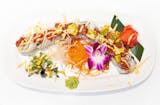 Tempura lobster tail, avocado, asparagus, scallion, cream cheese with volcano topping, sweet sauce & spicy mayo.