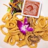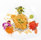 Fried snapper, scallion, cucumber, avocado, with smoked salmon & sweet sauce.