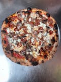 House red sauce, basil, fresh and aged mozzarella, sausage.