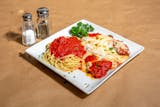 Veal topped with pasta, red sauce, and a blend of fine cheeses.