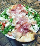 Folded pizza with fresh mozzarella, cherry tomatoes, prosciutto di parma, arugola, shaves parmigiano cheese.