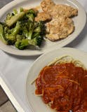 "Craving a delicious, wholesome meal that satisfies your hunger and nourishes your body? Introducing our Grilled Chicken Dinner - a culinary masterpiece that will transport your taste buds to flavor heaven." Choice of broccoli or spaghetti Served with a side of spaghetti, homemade garlic rolls, and house salad or soup Expertly grilled to perfection, our chicken is juicy, tender, and bursting with savory flavors. This Grilled Chicken Dinner is the ultimate comfort food, providing a balance of lean protein, complex carbs, and fresh veggies to fuel your body and delight your palate. Whether you're looking for a satisfying weeknight meal or a crowd-pleasing dish to share, this dinner is sure to become a new family favorite.
