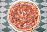Pepperoni, sausage, ham, bacon, meatballs, mushrooms, green peppers, onions, black olives.